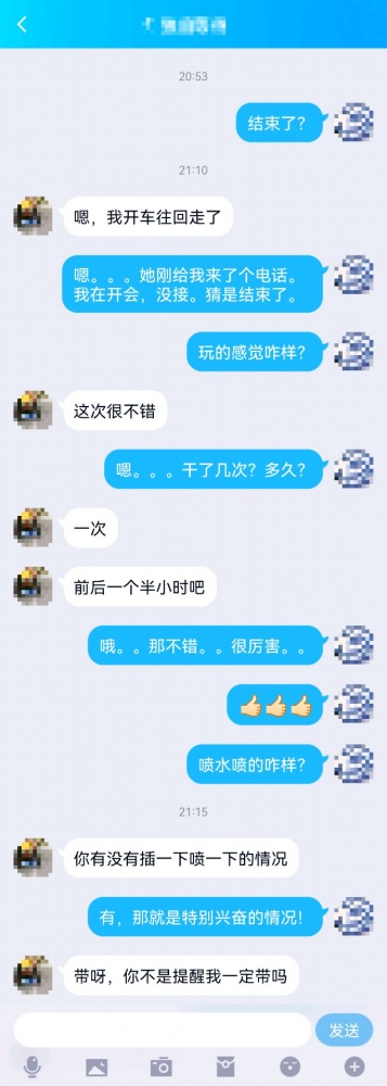 妻子是个典型的反差婊,平时一本正经,一副高冷范,床上却是风骚淫荡,潮喷不断。上周四,单男私约玩她,妻子没给我说,以为我不知道,其实这都是我俩策划的。周四晚上被单男一通狂操,身体都爽散架了,周五我回家发现她床上被我操的时候明显不在状态,我假装不知情问她是不是被别人操爽,没力气了。她闪烁其词,不好意思坦白。呵呵。。理解女人的小心思吧!她快乐就好。